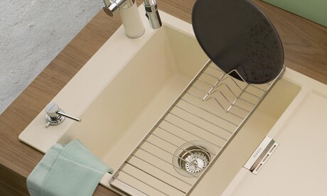 Spüli will man immer griffbereit am Spülbecken stehen haben. Leider steht der entsprechende Behälter irgendwie oft im Weg, fällt um und hinterlässt Ränder, wo immer man ihn abstellt. Von daher ist es mehr als praktisch, den Spender als Metallgehäuse fest im Spülbecken oder gleich daneben in der Arbeitsplatte installiert zu haben.