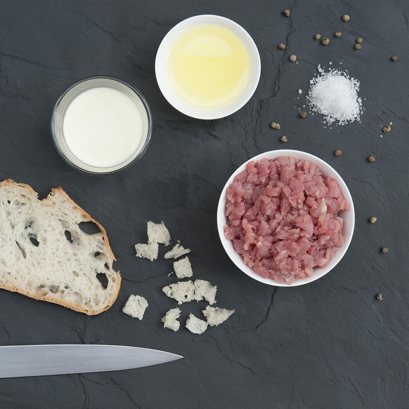 Eine Farce sorgt dafür, dass feine Lende im Teigmantel nicht austrocknet oder dass zum Beispiel sehr grätenreicher Fisch wie Hecht seiner kulinarischen Bestimmung als Klößchen folgen kann. Beachten müssen Sie bei einer Farce, dass sie während des Herstellungsprozesses kalt bleibt – sonst verliert sie die Bindung. Ein Pürierstab sollte deshalb nur kurz zur Anwendung kommen.