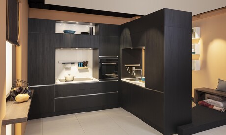 Das abgebildete Küchenbeispiel zeigt, wie sich die Zeile einer L-Küche als Raumteiler nutzen lässt – samt Oberschränken! Denn auch für so eine Anordnung bieten die Küchenhersteller inzwischen funktionale und stabile Lösungen. Gerne zeigen wir Ihnen mehr!