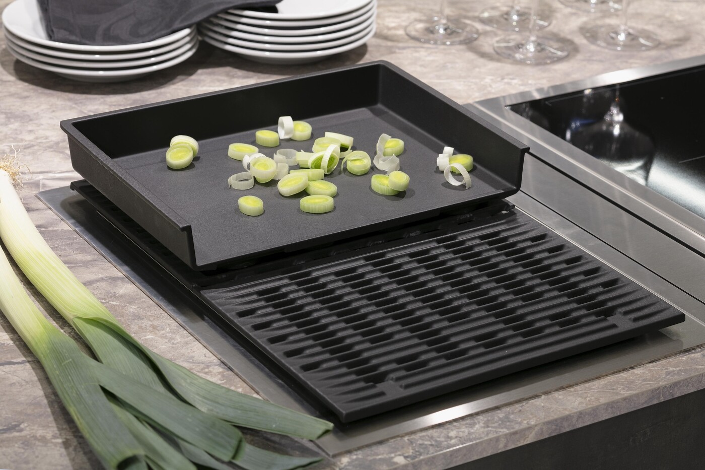 Wenn auch Sie in dieser Art braten möchten, haben wir eine gute Nachricht für Sie: Es gibt Kochfeld-Systeme, bei denen eine Teppanyaki-Platte bereits integriert ist. Dazu empfehlen wir einen leistungsstarken, aber leisen Dunstabzug oder eine Muldenlüftung.