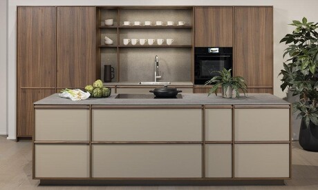 Besonders authentisch wirkt der Japandi-Look mit Holzleisten. Diese können auf lackierten Fronten aufliegen oder auf Holzfronten. Umso charakteristischer, denn natürliche Materialien sind beim Japandi-Stil Kern der Philosophie: Sowohl die skandinavische als auch die japanische Designtradition teilen einen tiefen Respekt vor der Natur und ihren Materialien.